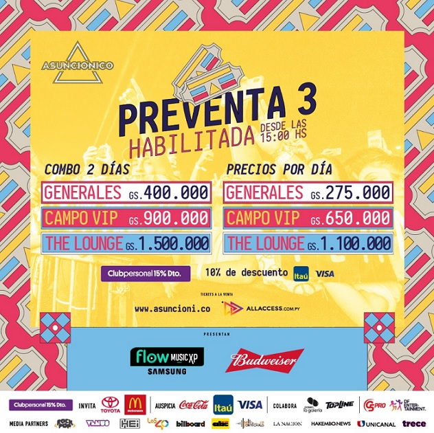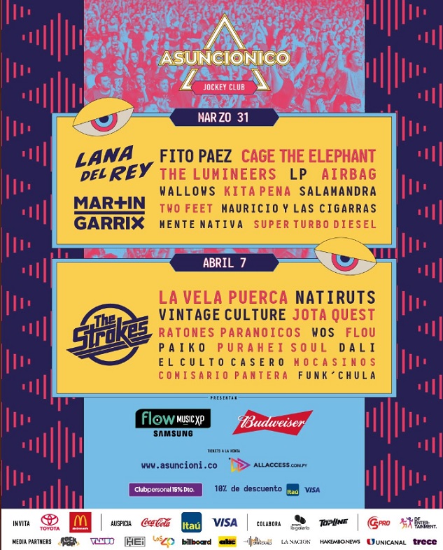 Ambos días del festival se desarrollarán en el Jockey Club del Paraguay. Las entradas están en venta en la plataforma digital del Asuncionico.