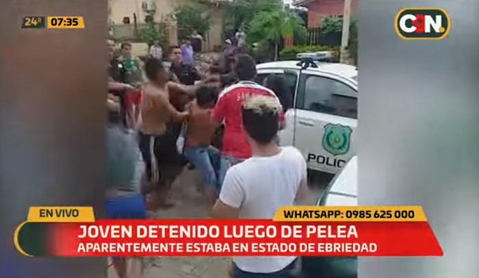 Sin embargo los agentes policiales, luego de varios minutos, lograron contener la pelea y se llevaron del lugar al detenido. El hombre presentaba una herida cortante en la cabeza, según informó C9N.