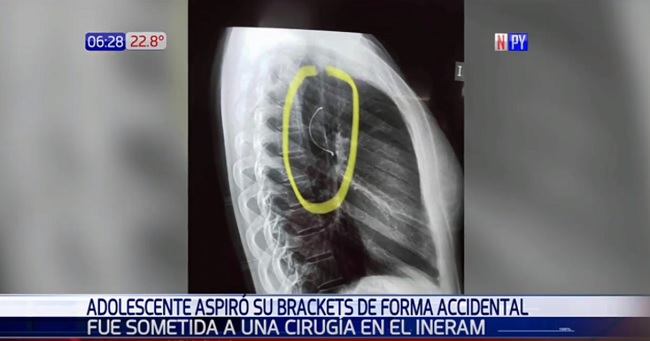 Una adolescente llegó hasta el Instituto Nacional de Enfermedades Respiratorias y del Ambiente (Ineram) con un cuadro de vómito y malestar, debido a que ingirió parte de su frenillo.