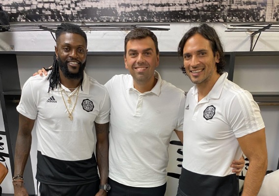 Adebayor, Marco Trovato y Santa Cruz. Foto: Gentileza.