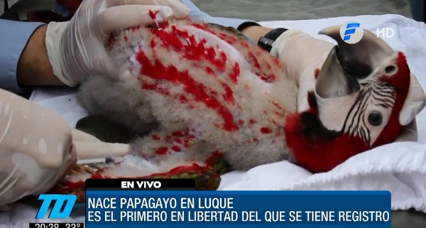 El ejemplar tiene unos 65 días, según los expertos biólogos que vinieron desde el Instituto Guacamayo Azul del Brasil.