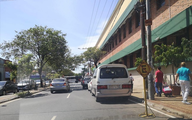 A pesar de la prohibición de estacionar en doble fila y obstaculizar el tránsito, este es el escenario actual frente al Colegio Cristo Rey de Asunción.