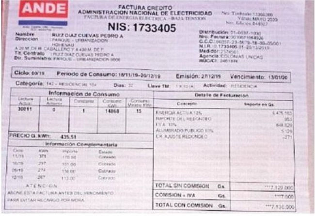 El afectado comentó que en la estatal le dijeron que debía pagar la millonaria suma correspondiente al mes de diciembre, para luego presentar el reclamo, además abonó la suma de G. 460.000 por enero.