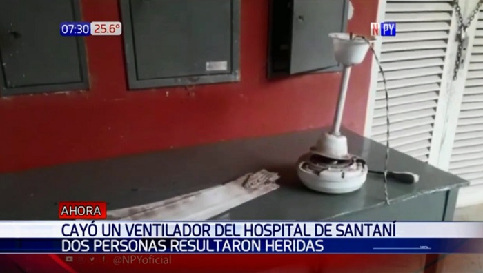 Dos personas resultaron heridas luego de que un viejo ventilador cayera en la zona de la preceptoría del Hospital Distrital de Santaní, donde pacientes esperaban ser atendidos.