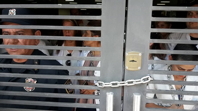 Este miércoles, médicos se encadenaron dentro de la Caja de Jubilaciones del Ministerio de Hacienda, por la falta de reglamentación de la Ley de Jubilación Médica, que fue promulgada en mayo del 2019.