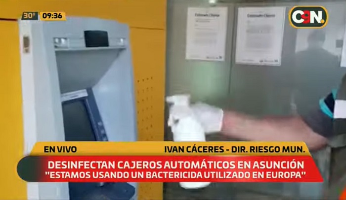 Desde tempranas horas de este martes, funcionarios de la Municipalidad de Asunción realizaron la desinfección de los cajeros automáticos en la capital del país.