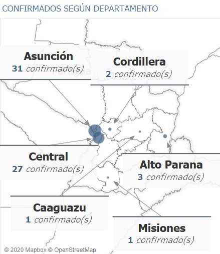 Asunción sigue siendo la zona con más casos, 31 en total, mientras que el departamento Central suma 27.