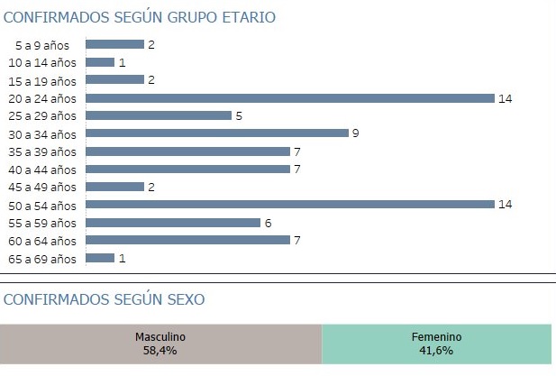 El sexo masculino sigue teniendo el mayor porcentaje de infectados, con 58,4%, mientras que el femenino se encuentra con 41,6%.