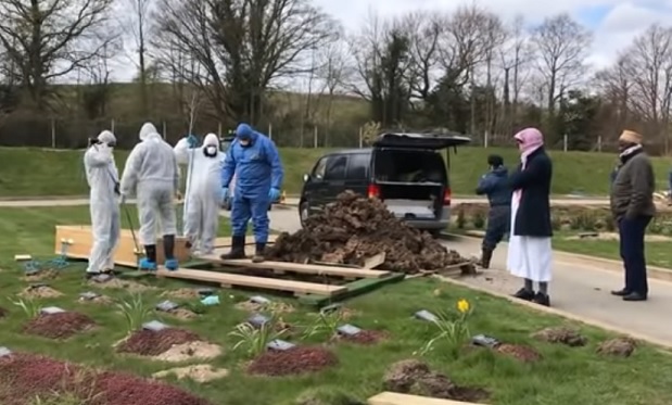En el video del sepelio se puede ver que los familiares observan desde lejos, mientras el cajón en depositado en el cementerio.