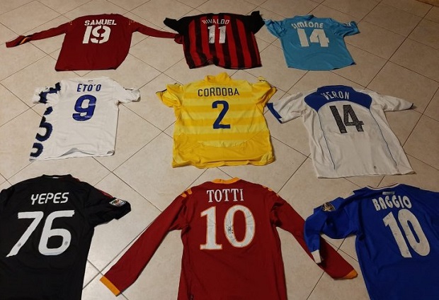 Entre las camisetas que subastan se encuentran las de Francesco Totti, Juan Sebastián Verón, Clarence Seedorf, Rivaldo, Hernán Crespo, David Trezeguet, Carlos Tévez, Roberto Baggio, Fabio Cannavaro, Marcelo Salas, Samuel Eto’o, Alesandro Costacurta, entre otros.