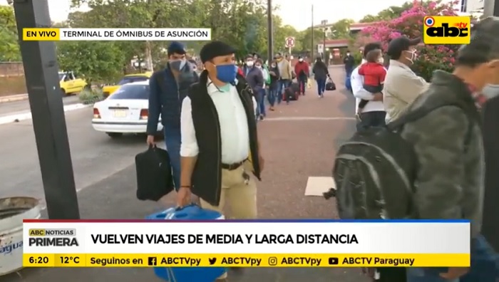 Este lunes se reanudaron los servicios de viajes de corta, mediana y larga distanci con algunas restricciones. Desde muy temprano, largas filas de pasajeros se formaron en la Terminal de Ómnibus de Asunción.