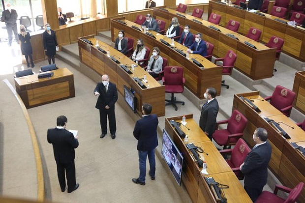 La sesión estaba prevista para las 8:30, se retrasó casi 30 minutos y estuvieron presentes un total de 27 senadores y 43 diputados. Algunos participaron en la sede legislativa y la mayoría de manera virtual.