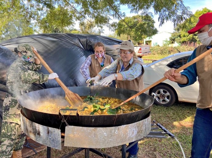 Nuestras voluntarias prepararon el almuerzo para 350 personas en el barrio San Juan de María Auxiliadora, Itapúa 👏🏻👏🏻👏🏻#ParaguaySolidario 🇵🇾 pic.twitter.com/1kgzYHl6Wo