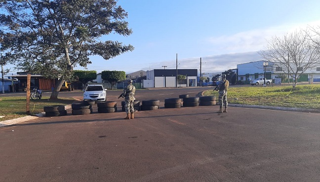 Como elemento de obstaculización del tránsito de personas, utilizaron varias cubiertas que acompañan las tareas militares.
