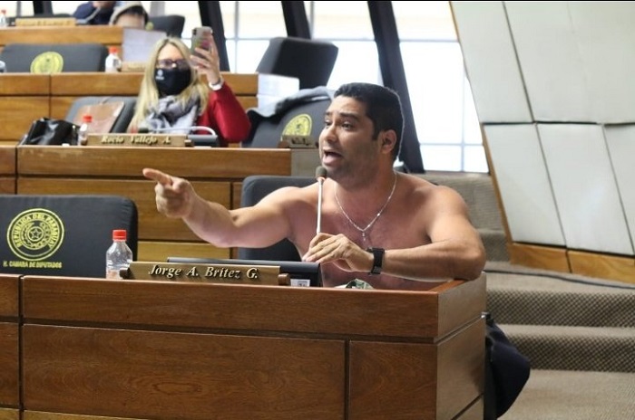 En la sesión de la Cámara de Diputados, el legislador Jorge Britez se desprendió la camisa, quedando con el torso desnudo como forma de protesta ante la situación económica del Alto Paraná.