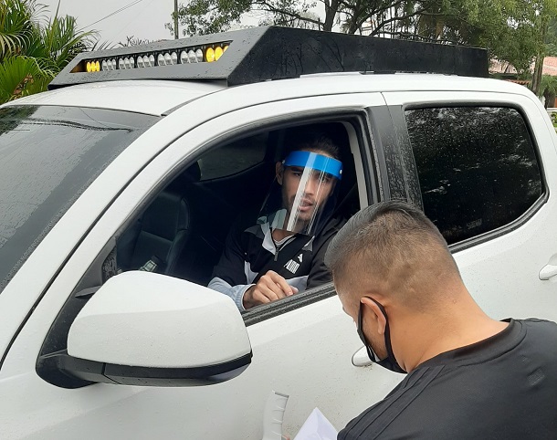 Los futbolistas reciben un número y de acuerdo a ello ingresan a la Villa Olimpia. Antes de entrar les toman la temperatura para luego proseguir.
