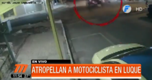 En imágenes de circuito cerrado se observa como una mujer perdió el control de su vehículo y atropelló a un motociclista. Ocurrió en la ciudad de Luque.