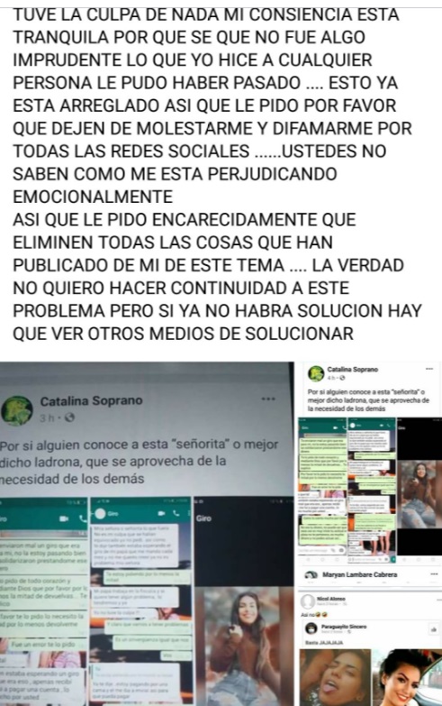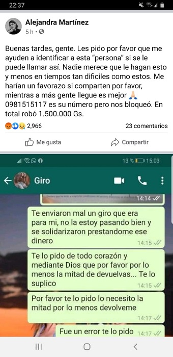 Un total de G. 1.500.000 es el monto de dinero que Martínez debía recibir, pero que Ayelen se negó a reponer, de acuerdo a las capturas de pantalla publicadas.