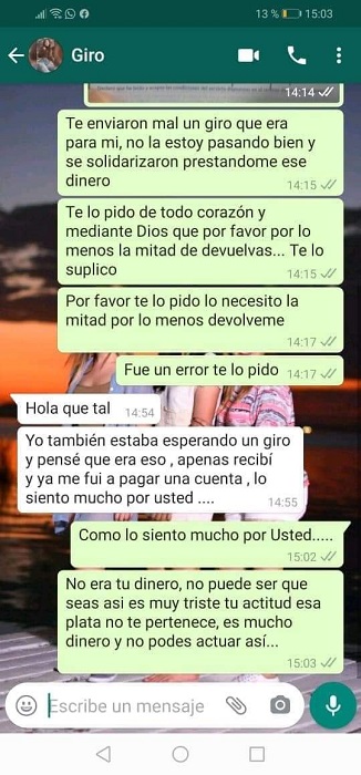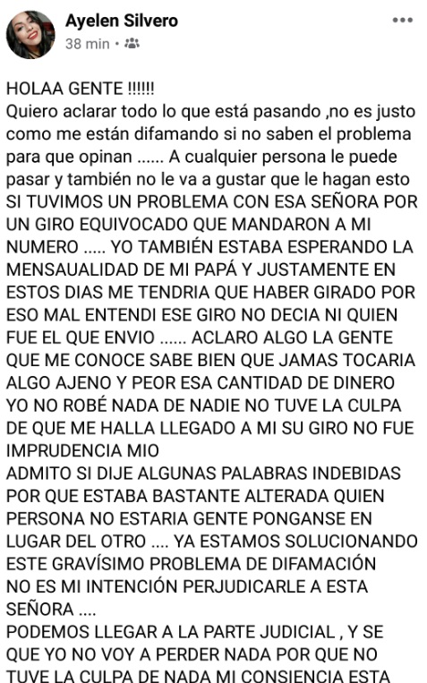 La misma fue denunciada por Alejandra Martínez, quien manifestó que por error Ayelen recibió un giro que en realidad era para ella y que la acusada se negó a devolver el dinero.