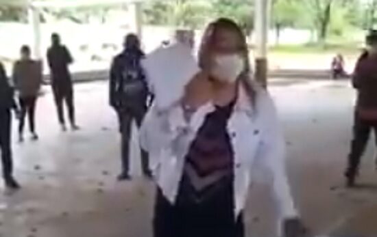 La edil llegó al salón municipal y exigió a los personales de blanco que entreguen el documento de las personas que dieron positivo en este distrito y aseguró que “esto del COVID-19 es todo un teatro”.