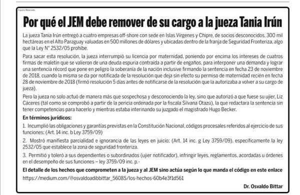 El letrado mencionó en comunicación telefónica con RDN que realizaron la solicitada en al menos tres medios impresos y digitales del país.