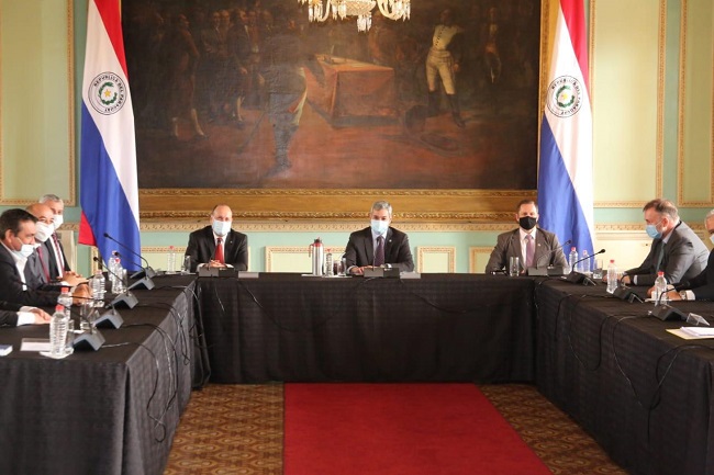 La Cumbre de Poderes se realizó este lunes en el Palacio de López, en la que estuvo presente el presidente Mario Abdo Benítez, el representante del Congreso, Oscar “Cachito” Salomón y el titular de la Corte Suprema de Justicia, Alberto Martínez Simón.