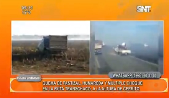 A consecuencia de la intensa humareda registrada a causa de incendios forestales, se registró un múltiple choque en la ruta Transchaco.