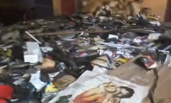 En el lugar se encuentran los discos de metal con los filmes entre los escombros, así también pósters de películas de la época.
