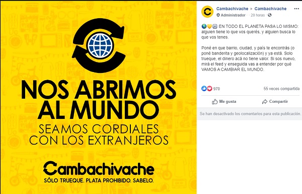 Los administradores del grupo Cambachivache, en Facebook, anunciaron que el grupo se abrió para personas de otros países.
