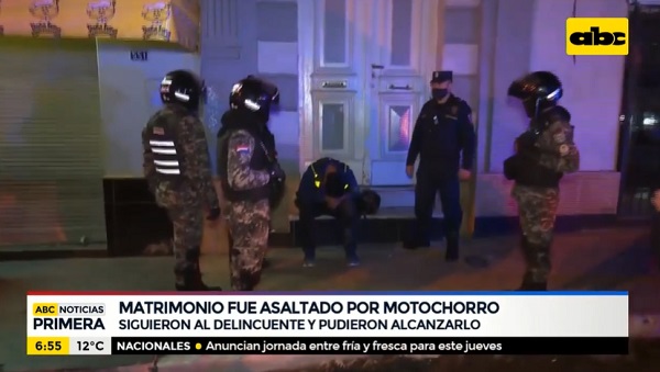 Las víctimas lograron recuperar sus pertenencias y el motochorro fue identificado como Saturnino Ezequiel Pereira Gamarra, de 22 años, con antecedentes penales por robo agravado y reducción.