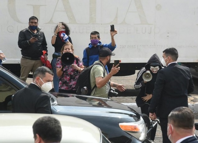 Con megáfonos escracharon a los invitados por asistir a la celebración en medio de la pandemia de coronavirus, que ya ocasionó más de 100 muertes a nivel país.