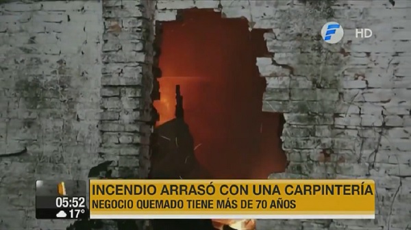 Se registró un incendio que arrasó con una carpintería, en Asunción. El negocio quemado tiene más de 70 años.