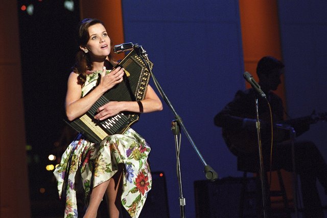 Reese Witherspoon interpretando a la estrella de la música country June Cartes, en la película Walk The Line, trabajo que le valió un Oscar en 2005.