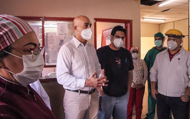 Primeramente, llegó hasta el hospital de Eusebio Ayala para verificar la provisión de oxígeno y EPI, así como también para observar el funcionamiento del sistema de atención materno infantil.
