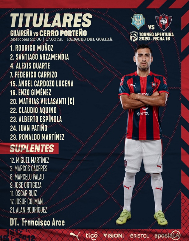 El puntero mide desde las 17:00 a Guaireña en Villarrica, en el marco de la Fecha 16 del Apertura.