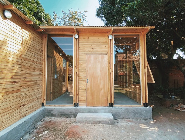 Las viviendas cuentan con cimiento de hormigón, paredes de fibrocemento, techo de chapa con cielo raso. Se pueden agregar vidrios templados y piso vinílico o porcelanato. El maderamen sostiene la estructura y puede ser revestido interiormente con fibrocemento y pintado como terminación.