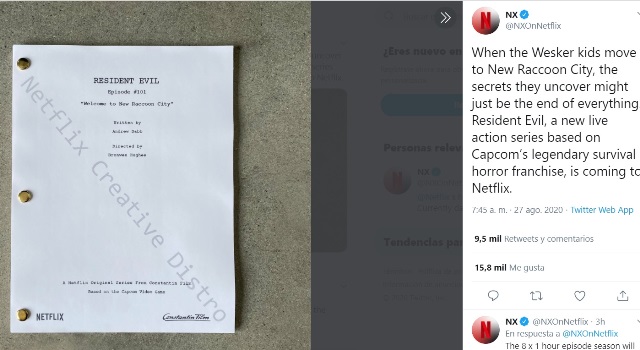 La noticia fue confirmada por la cuenta de Netflix en Twitter que publicó la foto del guión del primer episodio de la serie.