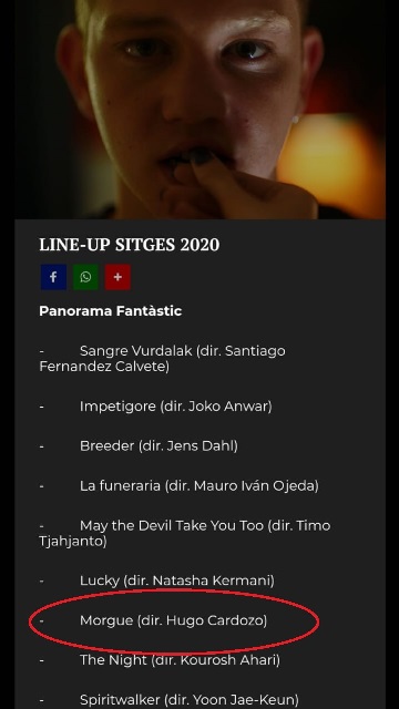 “Estoy más que contento con esta gran noticia. Morgue estará en uno de los festivales de Cine más prestigiosos del mundo «SITGUES» ¡Gracias Sitges por el llamado! a filmshark por el gran trabajo y por sobre todo gracias a Dios por esta nueva corona!! Salud por el cine Nacional”, escribió en redes el director Hugo Cardozo.