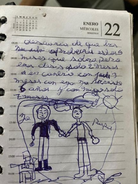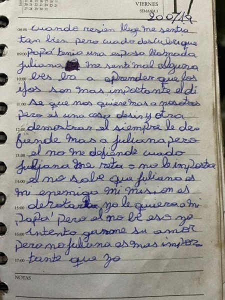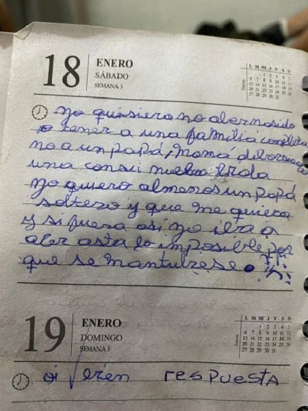“Yo quisiera no haber nacido”, dice parte de la nota que forma parte de una agenda personal de la niña, que,según los escritos buscaba tener la atención y el cariño de su padre.