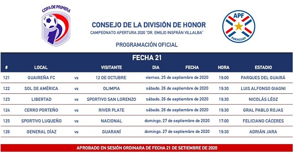 En lo que respecta a la definición del título, la agenda sabatina contempla la disputa de tres compromisos en simultáneo, uno en Barrio Obrero, otro en Tuyucuá y el tercer cotejo en Villa Elisa, informó la APF.