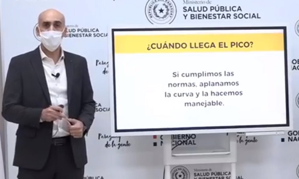 “¿Cuándo llega el famoso pico? Bueno, es muy probable que estemos en ese pico en este momento. Estamos hablando de la cúspide de la epidemia, esa cúspide puede ser prolongada en el tiempo (…) y entonces depende mucho de que podamos seguir haciendo lo que veníamos haciendo para poder seguir aplanando la curva”, explicó el secretario de Estado en la parte más sustanciosa de su exposición de la tarde de este viernes.