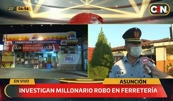 El comisario principal Ever Molinas relató a C9N que el funcionario de la ferretería Internacional denunció que el martes fue víctima de asalto, por cuatro malvivientes quienes en la vía pública le despojaron de la suma de G. 50.000.000 que este debía de depositar.