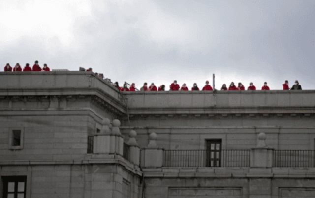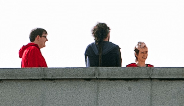 En este contexto, una serie de fotos saltaron a las redes mostrando lo que sería imágenes una de las secuencias finales, que se desarrollan en el Banco de España. Y es que cuando parte del elenco, entre ellos Úrsula Corderó, subieron a la terraza, cámara indiscretas de curiosos los “capturaron”.
