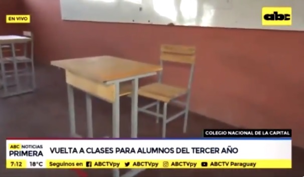 En el caso de los estudiantes del Colegio Nacional de la Capital, en las aulas se observa pupitres separados, ventanas abiertas, y también aires acondicionados.