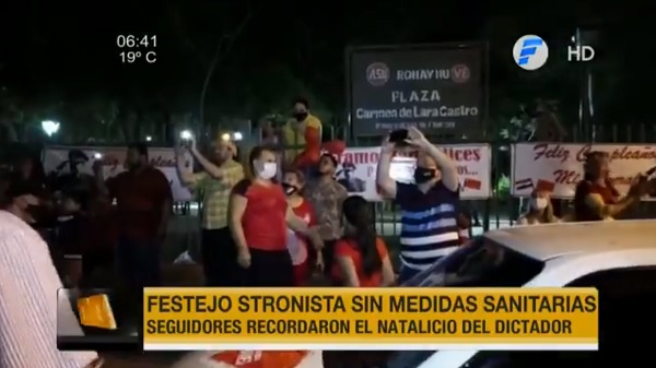 De acuerdo al reporte de Unicanal, vecinos del barrio San Pablo se aglomeraron en una plaza, ubicada sobre la avenida La Victoria, en Asunción y con música a todo volumen y bombas festejaron un año más del nacimiento del General Stroessner.