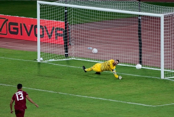 Cuando se iba el partido en Venezuela, el local tuvo un penal que fue pateado por Yangel Herrera, el cual tapó Silva, lo que permitió ganar a la Albirroja por 0-1.
