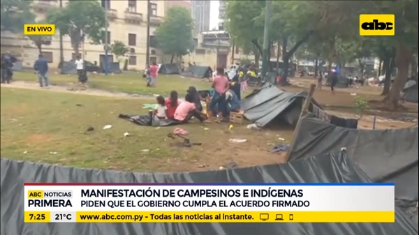 Unas 14 comunidades de familias indígenas provenientes de Caaguazú y Alto Paraná se encuentran apostadas en la plaza de Armas de Asunción solicitando regulación de tierras malhabidas y una mejor atención, en cuanto a servicios básicos.