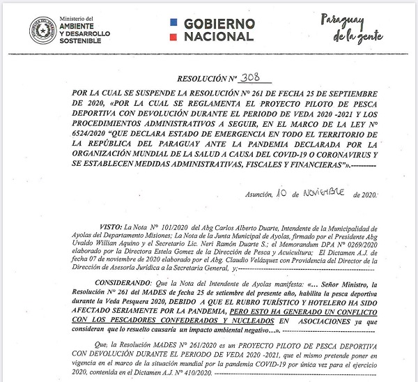 Además el intendente de Ayolas, Abog. Alberto Duarte, así como la Junta Municipal de dicha ciudad, enviaron una nota donde alegan la problemática social en el distrito por la resolución emitida por el Mades.