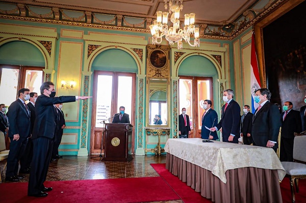 La ceremonia protocolar se desarrolló este lunes en el Palacio de Gobierno, donde también participó el vicepresidente Hugo Velázquez, el ministro de Interior, Euclides Acevedo y otras autoridades.