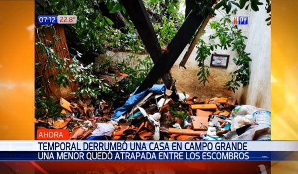 Carlos Núñez, vecino de la vivienda afectada en Campo Grande (Asunción), relató a Noticias Paraguay que un frondoso árbol salió de raíz y cayó sobre la habitación donde se encontraba una niña.
